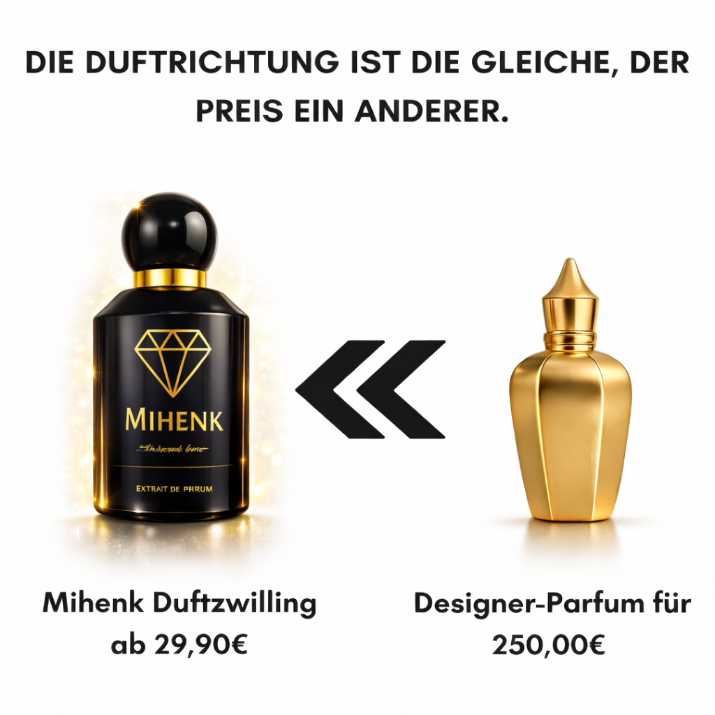 Wähle aus mehr als 300 exklusiven High-End Duftzwillingen aus – du erhälst im Set den maximalen Mihenk-Rabatt mit 30 %